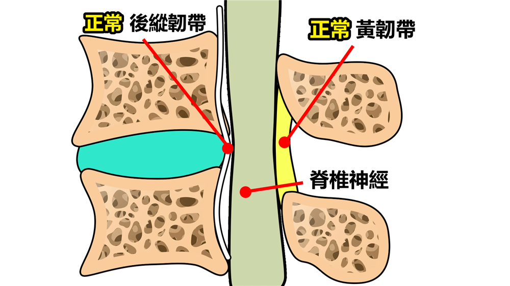 正常椎管會有足夠空間,以避免對脊髓或神經根造成壓迫。 |