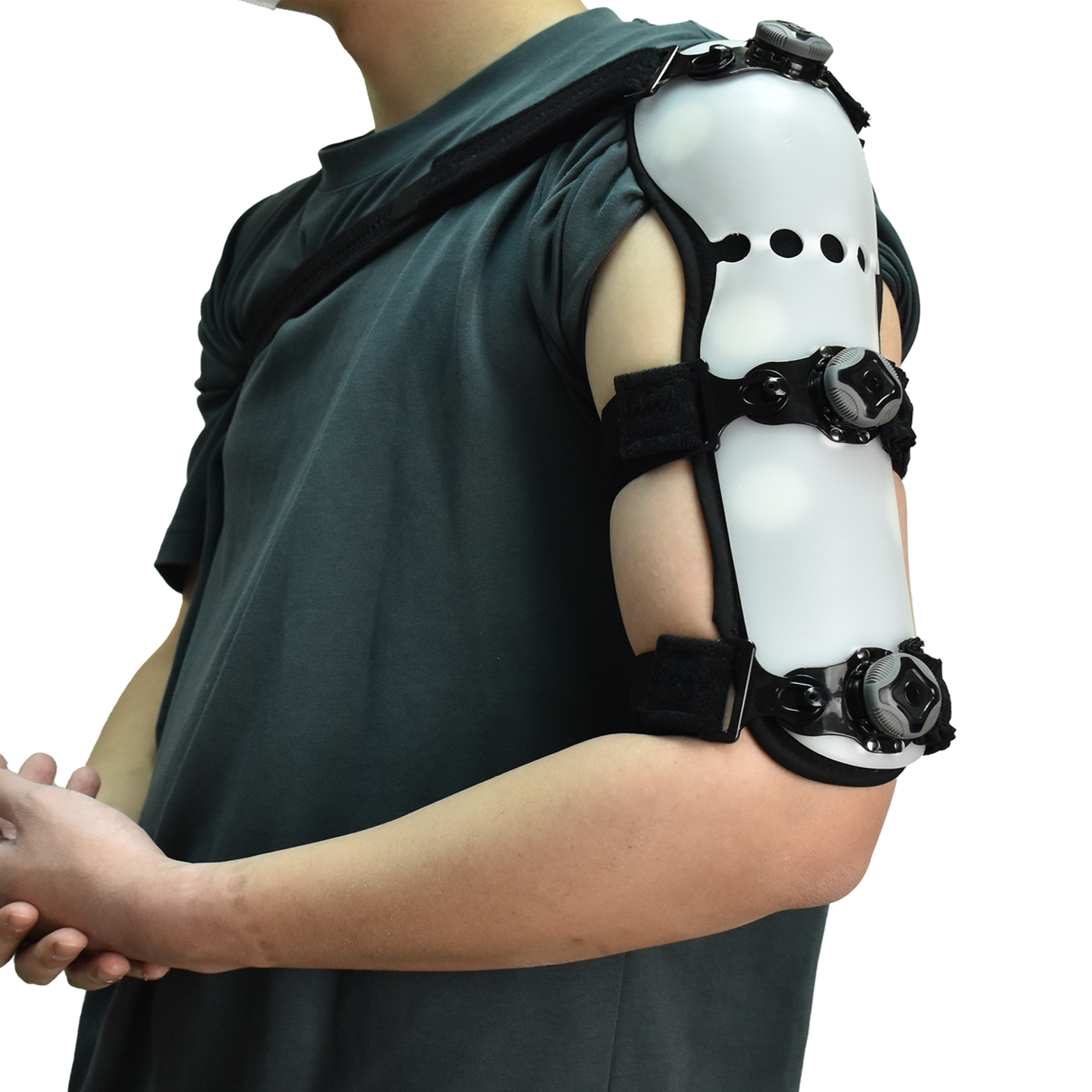 1)設有兩塊成形夾板,可以由肱骨頂部至肱骨下部作固定代替打石膏