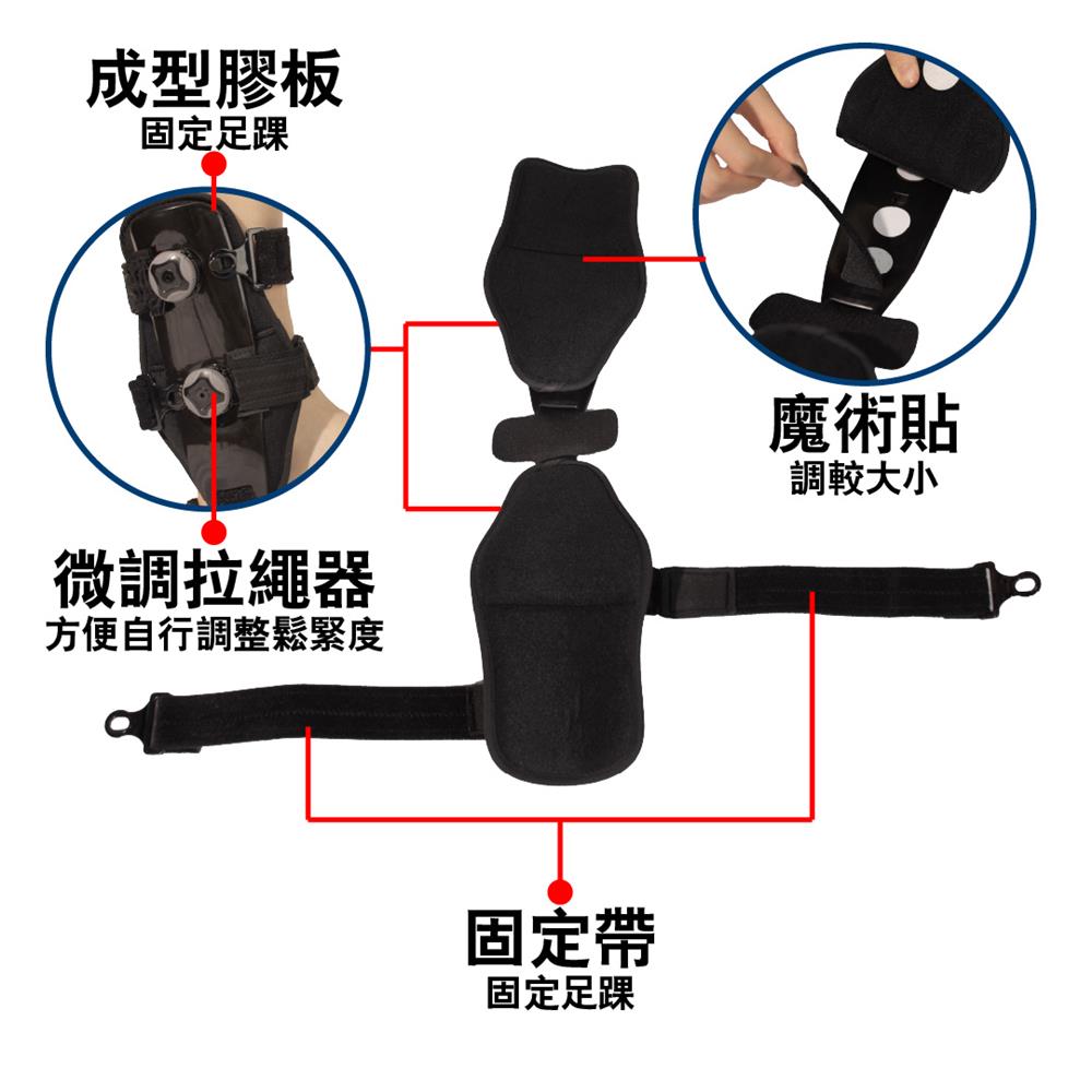 A09b 馬蹬式足踝固定護具(護踝)- 採用馬蹬式結構設計,配備拉繩微調固定器,可自行精準調節鬆緊度,內置成型內外側膠板,配合腳底連結支撐及柔軟海綿內墊,有效穩定足踝關節並提升佩戴舒適度。適用於治療一級、二級及三級足踝扭傷(拗柴)(包括有腫脹情況)、足踝扭傷、穩定性骨折、韌帶撕裂。