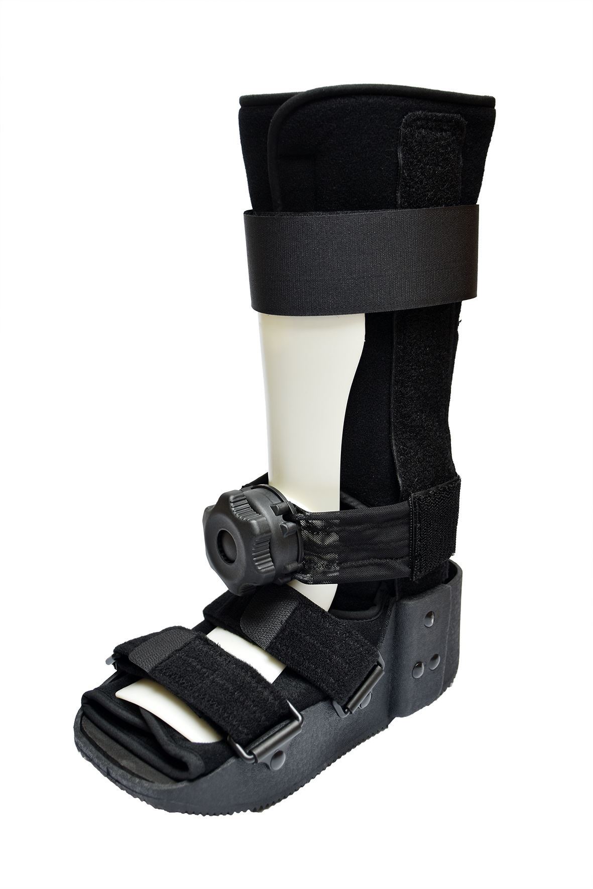 - 兩側鋁條及前後成型膠板固定足踝及小腿